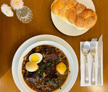 Hamim/Cholent – A Tradição em Cozimento Lento (R$ 65,00): Uma verdadeira joia da culinária judaica, este ensopado tradicional de cozimento lento é preparado com carinho e paciência, originalmente para o Shabat. No Sová, o Hamin será oferecido em uma versão especial, com carnes macias, grãos e legumes que se fundem em um caldo rico e profundo, trazendo a sensação de conforto e união familiar à mesa. É a escolha perfeita para as mães que apreciam sabores autênticos e histórias contadas através da comida.